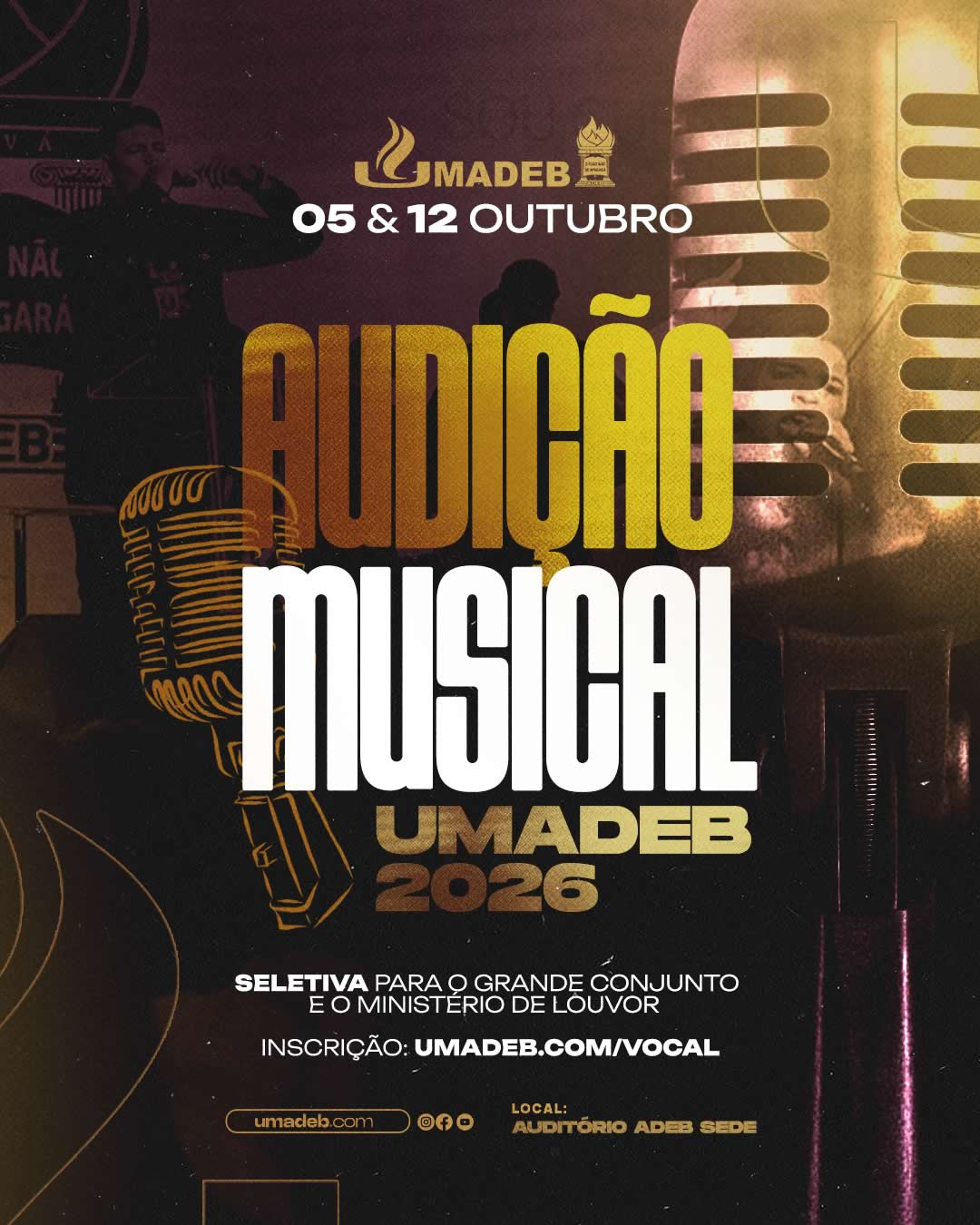 A União das Mocidades da Assembleia de Deus de Brasília (UMADEB) convoca jovens solteiros, irmãos e irmãs, que tenham dons musicais e corações dedicados ao louvor.